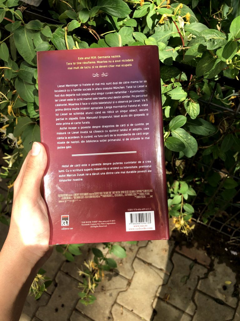 Astăzi am terminat o carte foarte frumoasă, emoționantă și bine scrisă. Este vorba despre „Hoțul de cărți” de Mark Zusak. Am plâns foarte mult citind-o și m-a marcat. Este o carte povestită din perspectiva Morții, ceea ce o face mult mai interesantă. Consider că toți trebuie să o citim măcar o singură dată în viață!