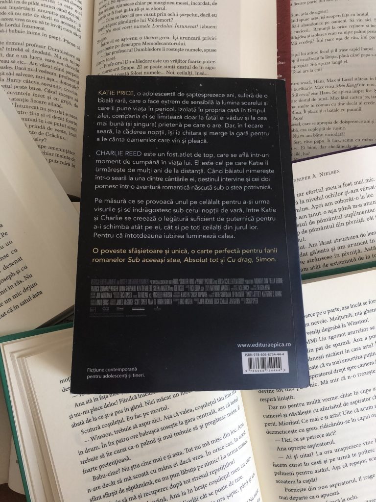 „Sub soarele nopții” scrisă de Trish Cook, apărută la editura @epicapublishinghouse este acum una dintre cărțile mele favorite. Această carte mi-a plăcut foarte mult și m-a emoționat. De abia aștept să văd și filmul💗